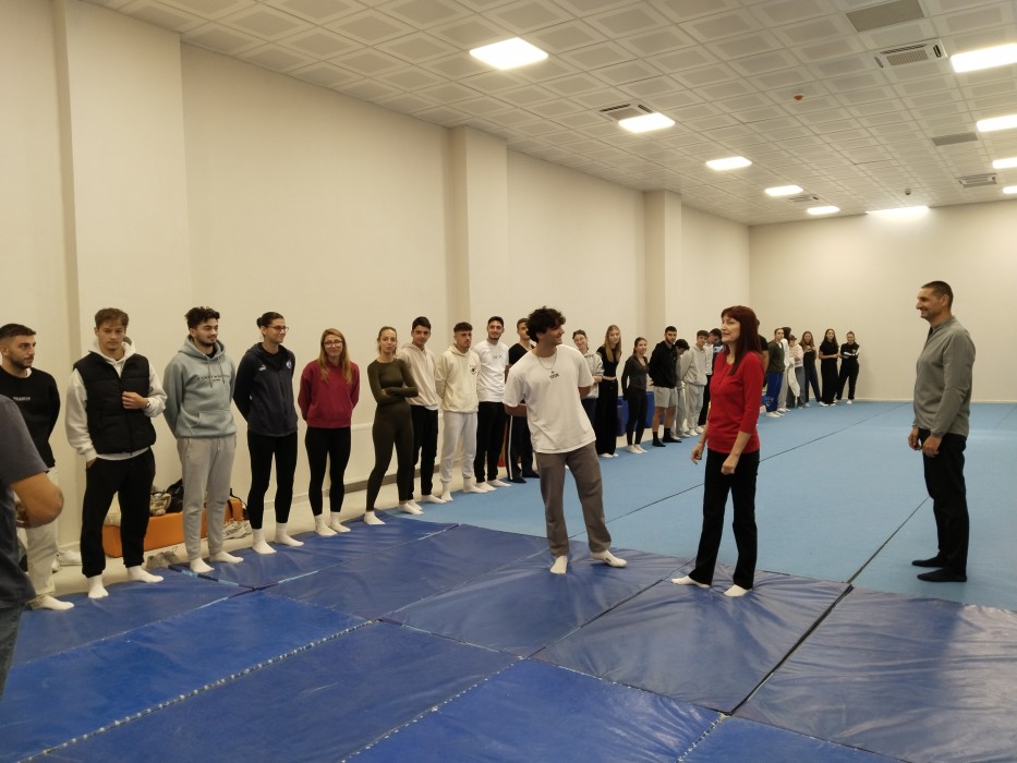 Bölümümüz 2. sınıf öğrencileri, Doç. Dr. Rositsa Dimkova eşliğinde verilen halk danslarını icra ederken doğruluk, netlik, ritim ve bütünlük gibi pratik beceriler edindiler. Katılımcılar, iki ülke arasındaki folklorik ortak noktaları keşfettiler ve ilgili dansları ayırt etme becerisi kazanırken, aynı zamanda eğitim faaliyetlerinde kültürel bir yaklaşım uygulamayı öğrendiler. Kıdemli Dr. Öğretim Üyesi Dimitar Nikolov'un rehberliğinde, insan vücudunun omurga, omuz ve belindeki rahatsızlıkların önlenmesi ve etkileri için fonksiyonel stabilizasyon egzersizlerine odaklanan pratik bir ders verildi.